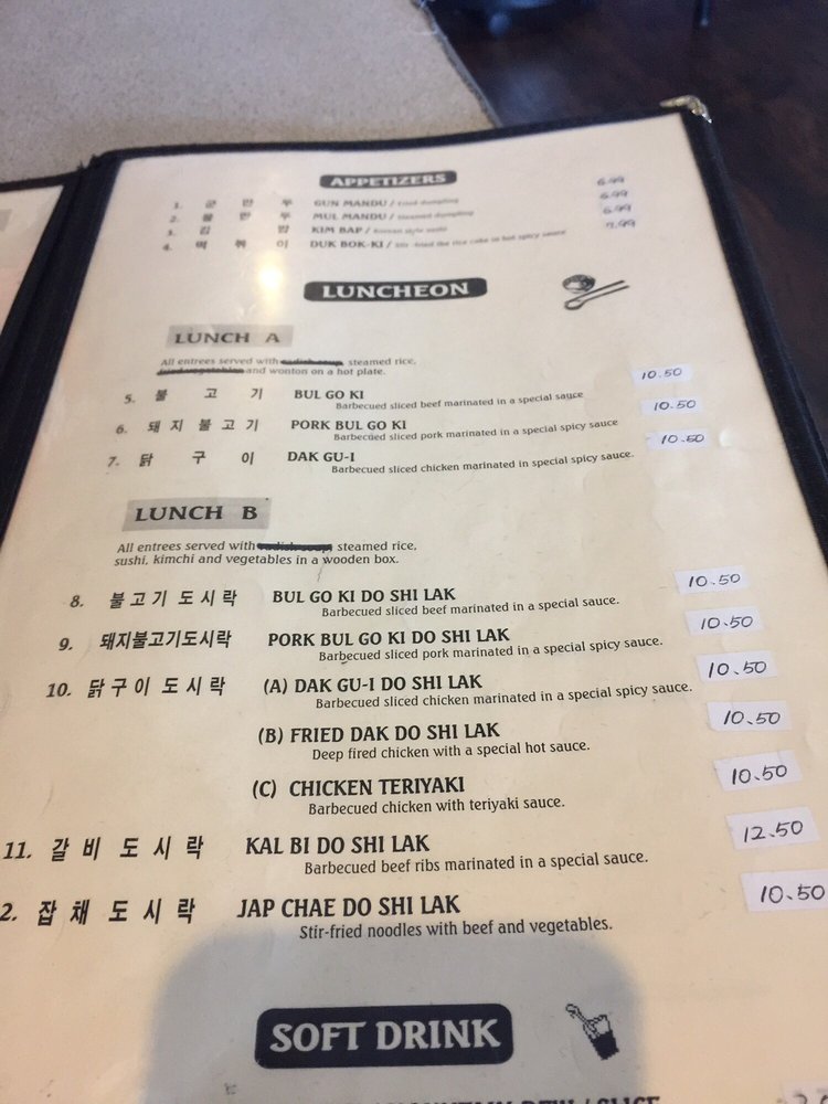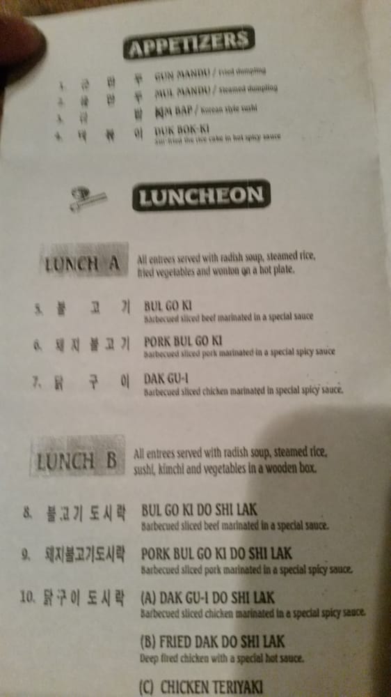 “ Food was tasty. Had the beef bulgogi and my husband had the bibimbap. Make sure you ask for the bibimbap served in a hot stone bowl. There are two types and the cold one is not nearly as good. ”